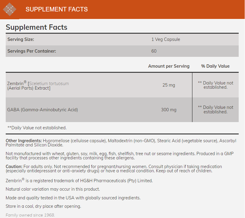 Zembrin® is an extract of Sceletium tortuosum, an herb traditionally used in South Africa for centuries to support emotional and mental well-being.* Modern clinical studies have demonstrated that Zembrin® can promote a feeling of calm while enhancing mental alertness.* In effect, it can help maintain emotional stability while enhancing certain cognitive functions, such as memory and mental flexibility.* Zembrin® may also help you get to sleep faster by promoting mental relaxation, but not drowsiness.*